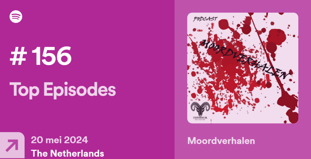 Met heel veel trots kunnen we zeggen dat de podcast Moordverhalen in de Hitlijst van Top Podcasts staat op Spotify.